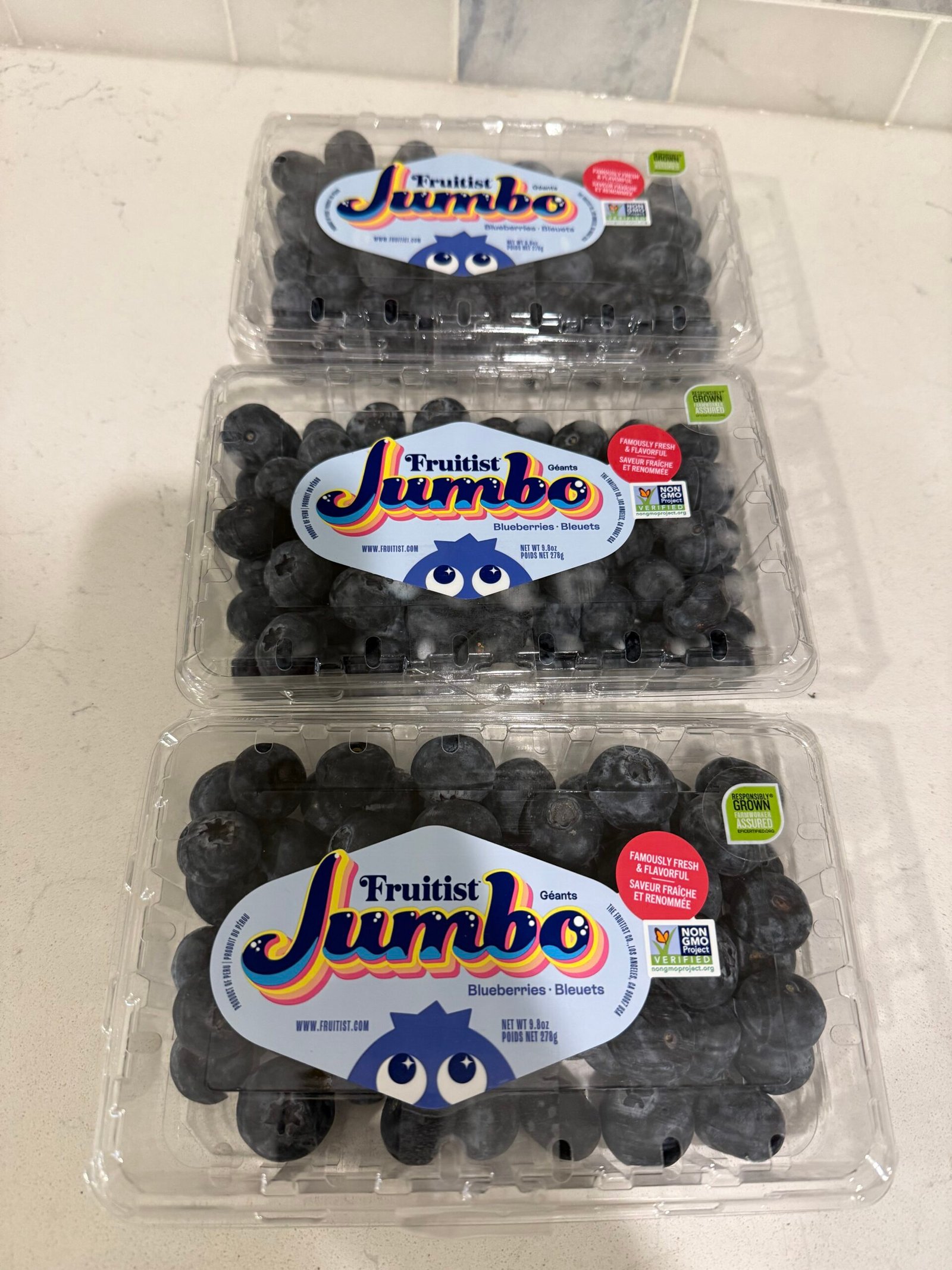 And yes, by “jumbo,” they meant each of the blueberries is actually quite humongous. As in, how are they almost as big as cherry tomatoes (or my kitchen cabinet knobs)?!